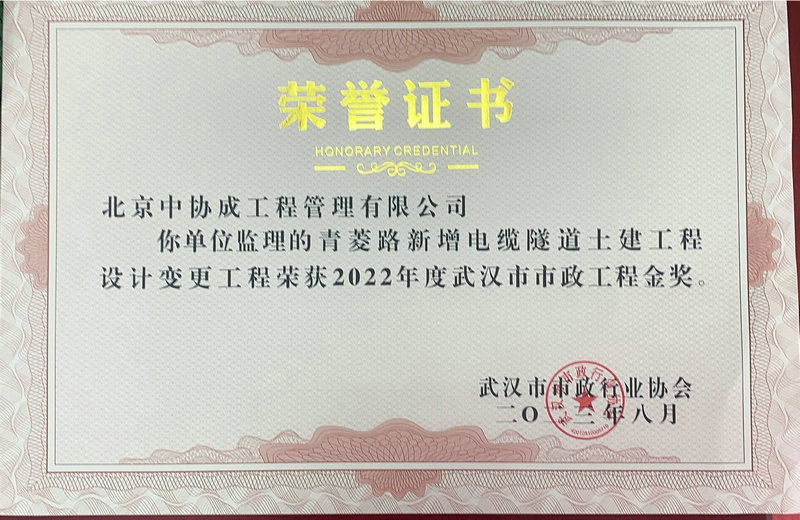 2022年度武漢市市政工程金獎(jiǎng)-青菱路新增電纜隧道土建工程設(shè)計(jì)變更工程