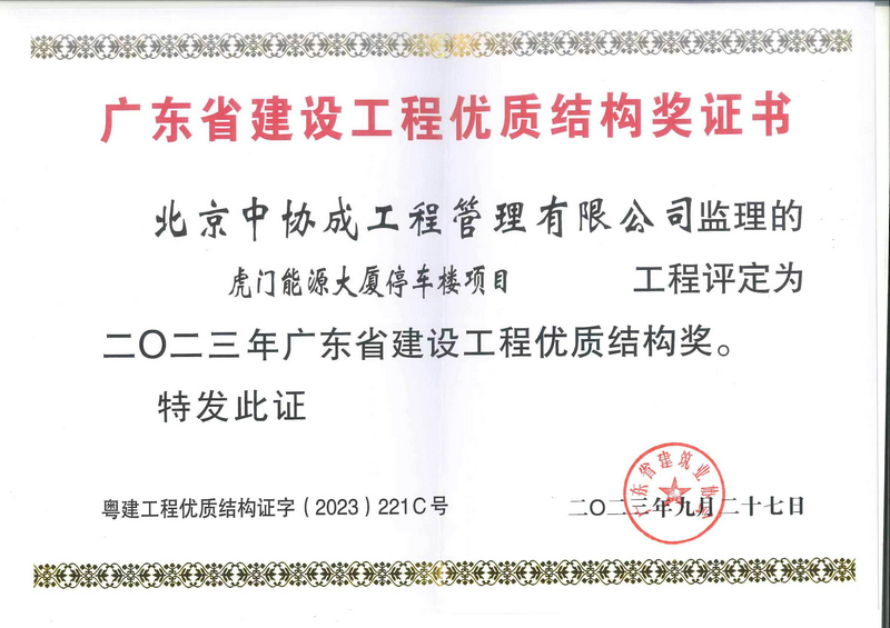 二〇二三年廣東省建設(shè)工程優(yōu)質(zhì)結(jié)構(gòu)獎(jiǎng)-虎門(mén)能源大廈停車(chē)樓項(xiàng)目