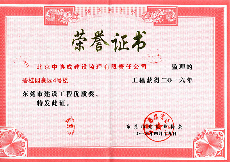 碧桂園4號(hào)樓2016榮譽(yù)證書(shū)