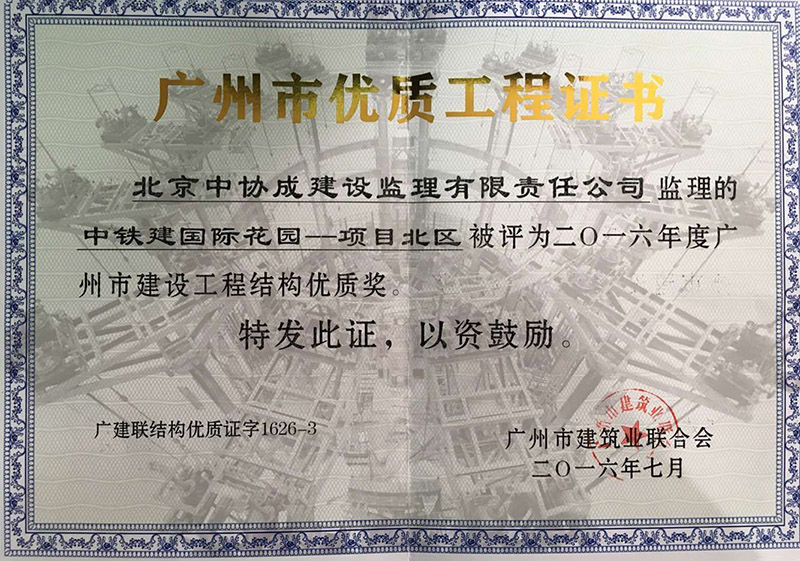 中鐵建北區(qū)優(yōu)質(zhì)工程證書(shū)