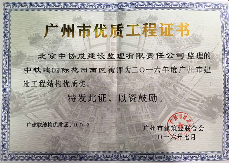 中鐵建南區(qū)優(yōu)質(zhì)工程證書(shū)