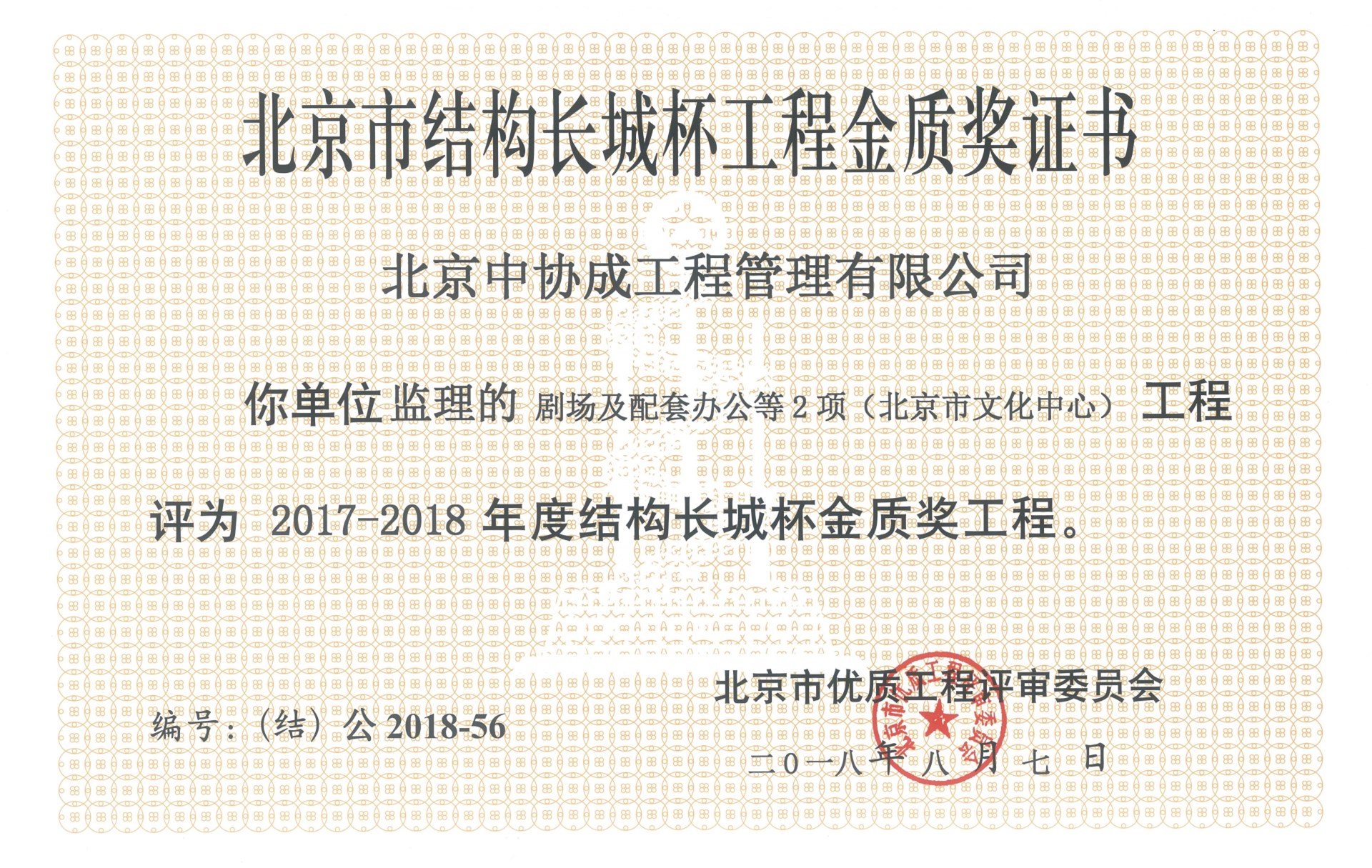 2017-2018劇場及配套辦公等2項(xiàng)(北京市文化中心)結(jié)構(gòu)長城杯金質(zhì)獎