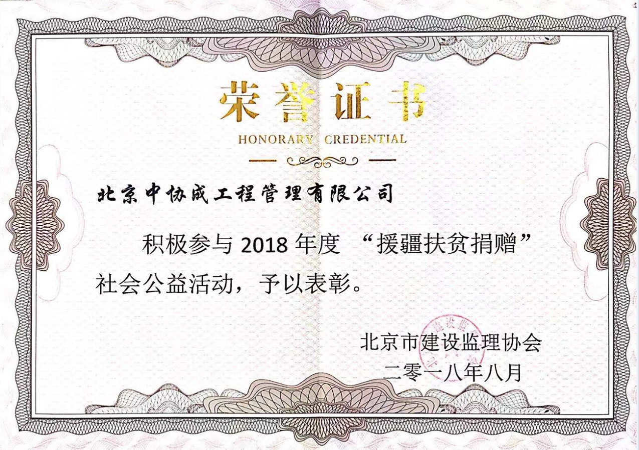 2018年度援疆扶貧捐贈(zèng)公益活動(dòng)榮譽(yù)證書