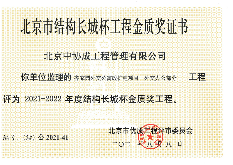 2021-2022年度結(jié)構(gòu)長(zhǎng)城杯金質(zhì)獎(jiǎng)-齊家園外交公寓改擴(kuò)建項(xiàng)目