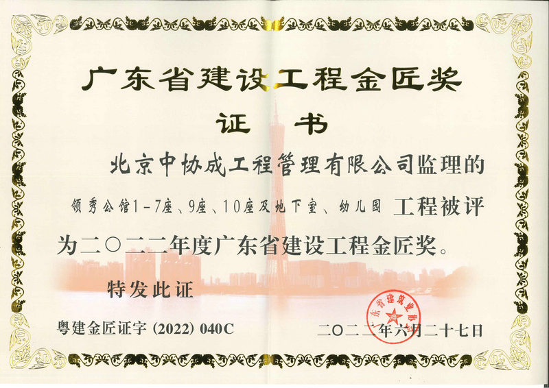 領(lǐng)秀公館1-7座等工程2022年度廣東省建設(shè)工程金匠獎