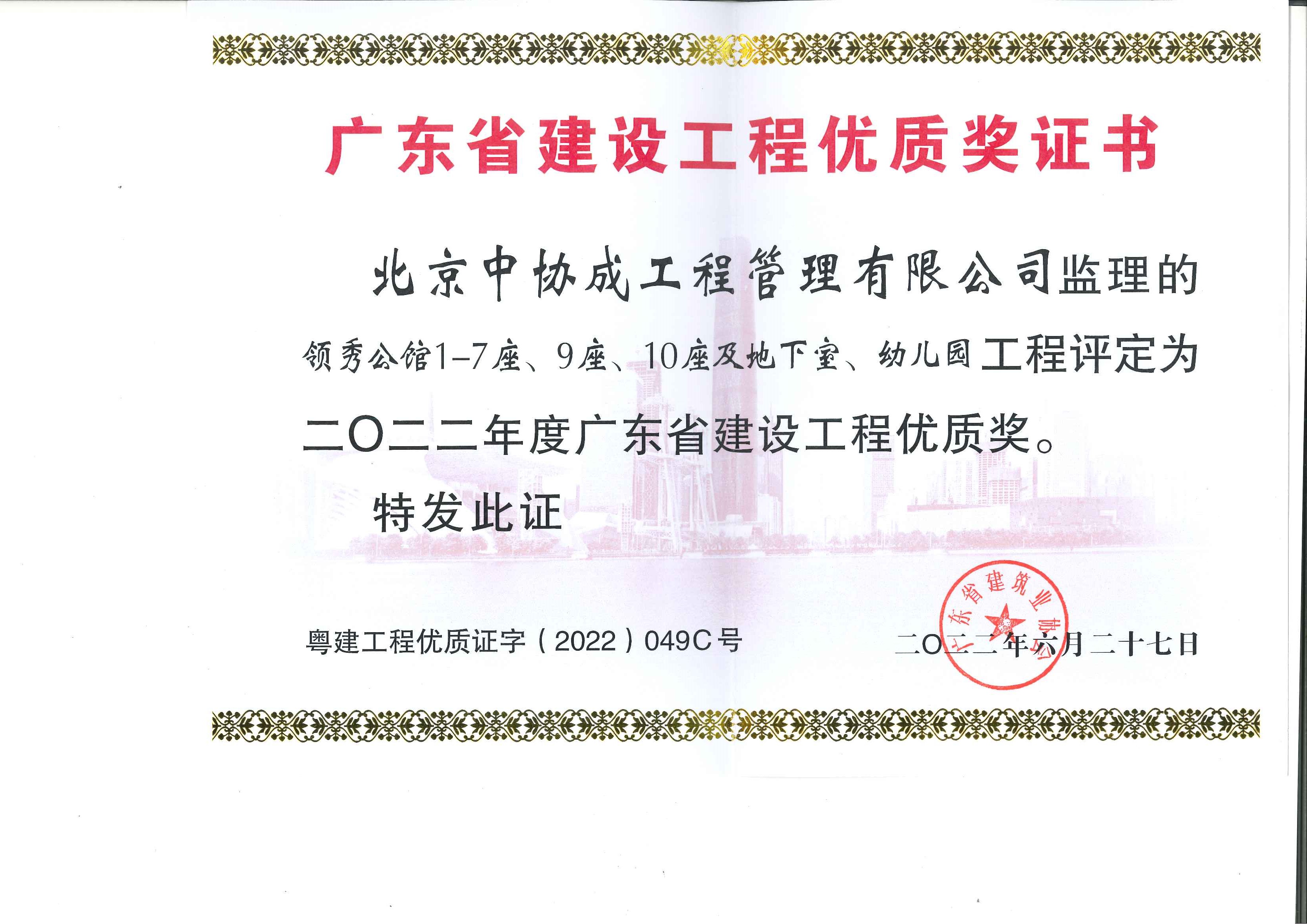領(lǐng)秀公館1-7座等工程2022年度廣東省建設(shè)工程優(yōu)質(zhì)獎(jiǎng)