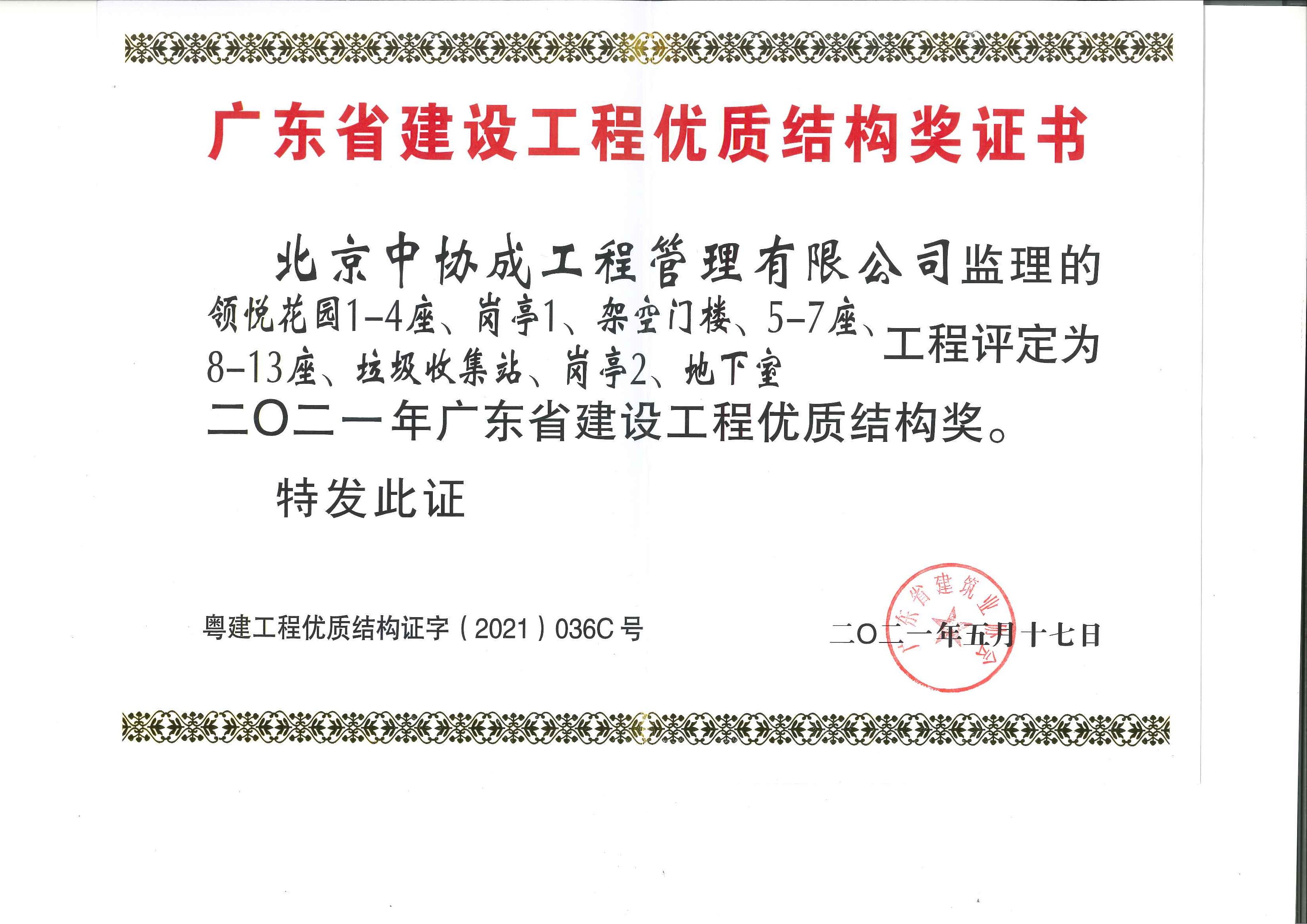 領(lǐng)悅花園1-4座等工程2021年廣東省建設(shè)工程優(yōu)質(zhì)結(jié)構(gòu)獎(jiǎng)