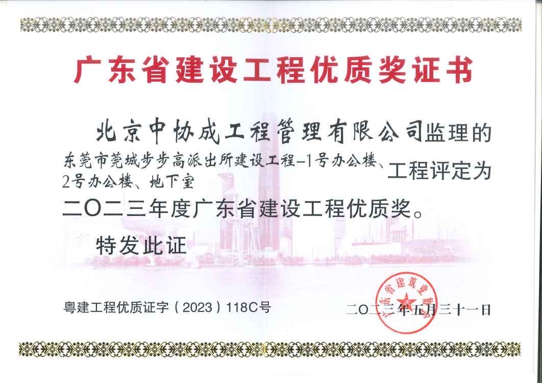 2023年度廣東省建設(shè)工程優(yōu)質(zhì)獎-東莞市莞城步步高派出所建設(shè)工程