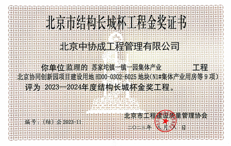 2023-2024年度結(jié)構(gòu)長城杯金獎工程-蘇家坨鎮(zhèn)一鎮(zhèn)一園集體產(chǎn)業(yè)北京協(xié)同創(chuàng)新園項目建設(shè)用地HD00-0302-6025地塊工程