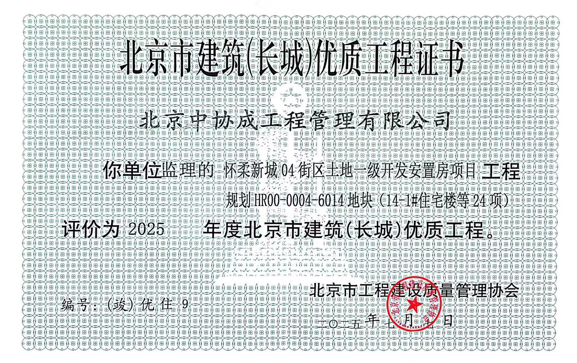 2025年度北京市建筑(長(zhǎng)城)優(yōu)質(zhì)工程-懷柔新城 04街區(qū)士地一級(jí)開(kāi)發(fā)安置房項(xiàng)目規(guī)劃HR00-0004-6014地塊工程